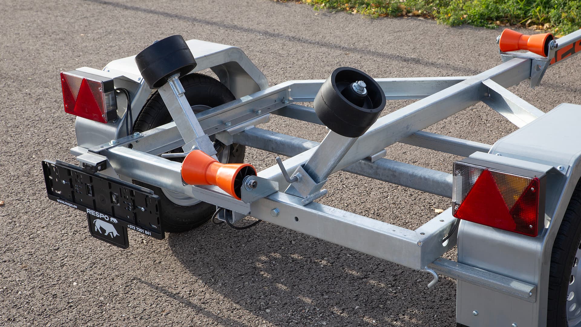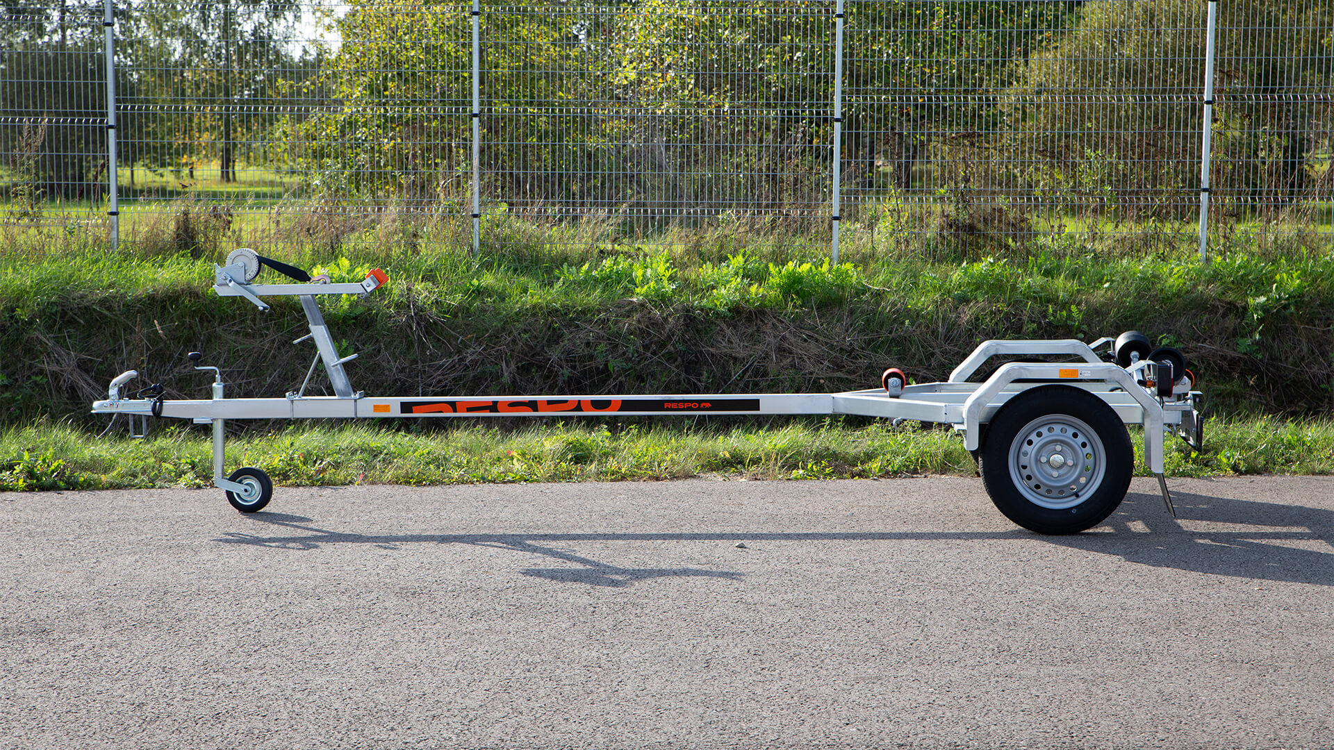 Respo’s minsta vagn som passar båtar upp till 4.6m. Galvaniserad stålram som skyddar mot korrosion även i saltvatten. Standardutrustningen inkluderar gå-på-skärmar och vattentäta nav.Båten ligger jämnt balanserad på kölrullar och justerbara sidostödrullar på sidorna. Denna vagn passar utmärkt till mindre båtar upp till 253kg.