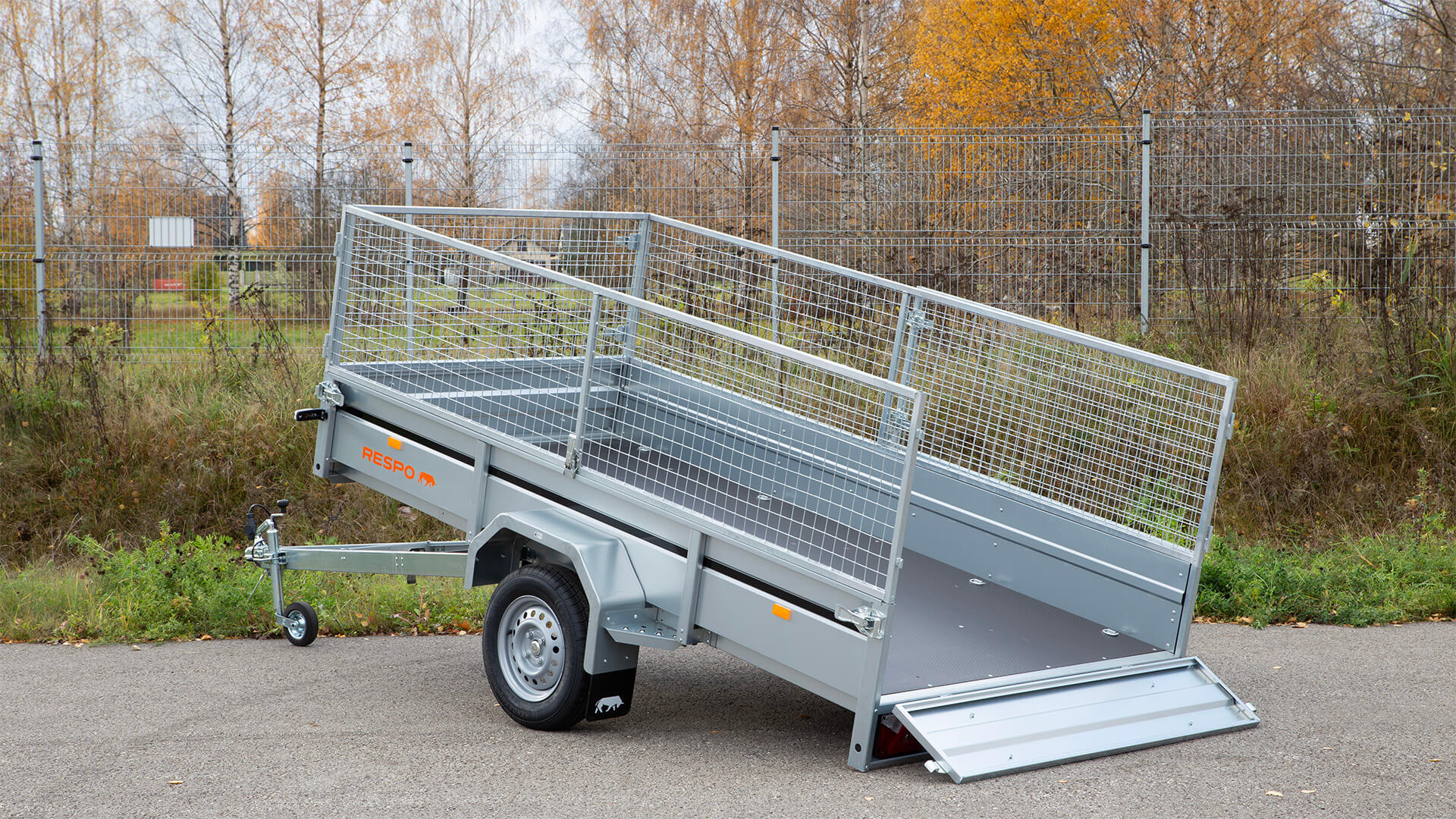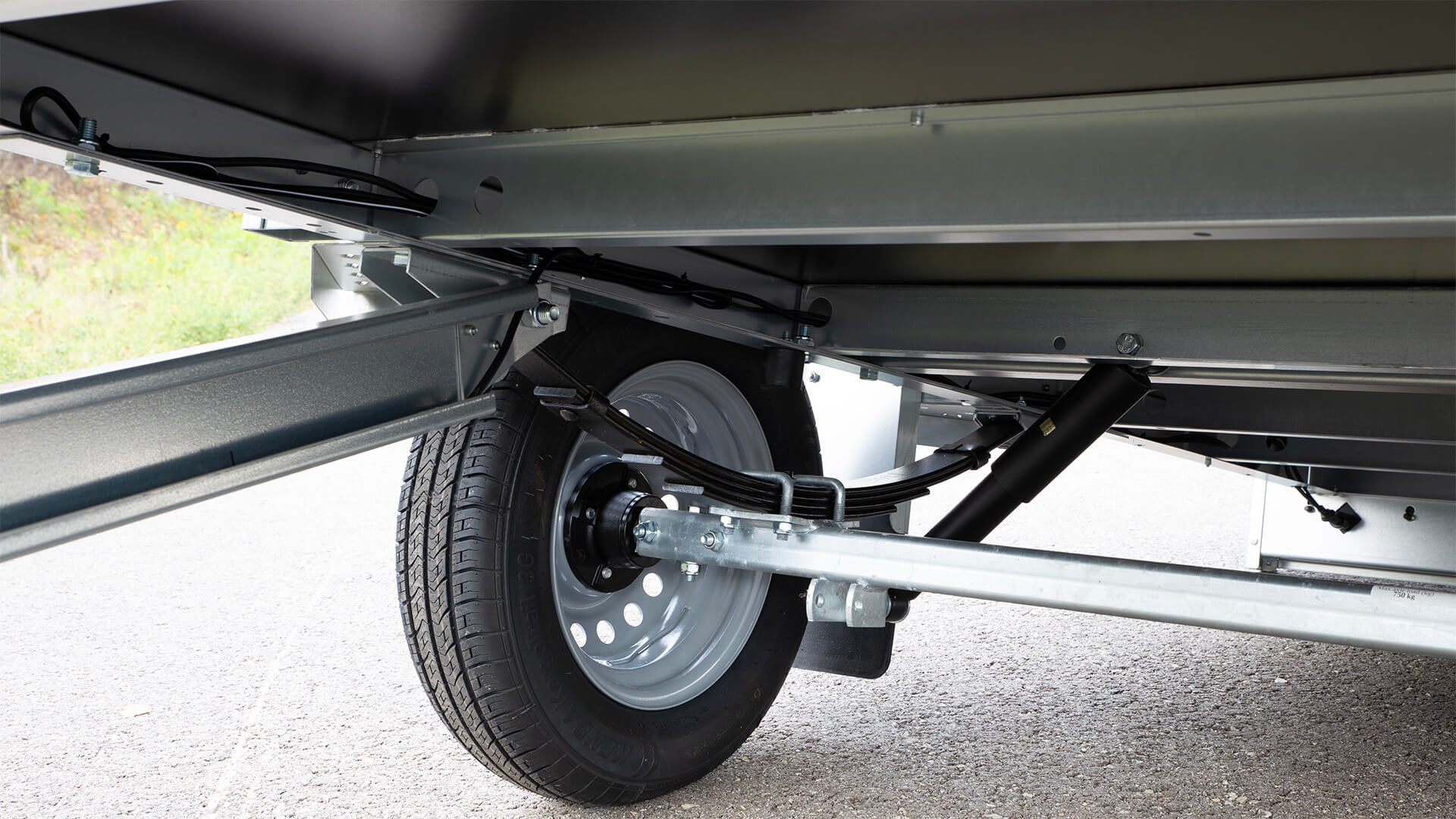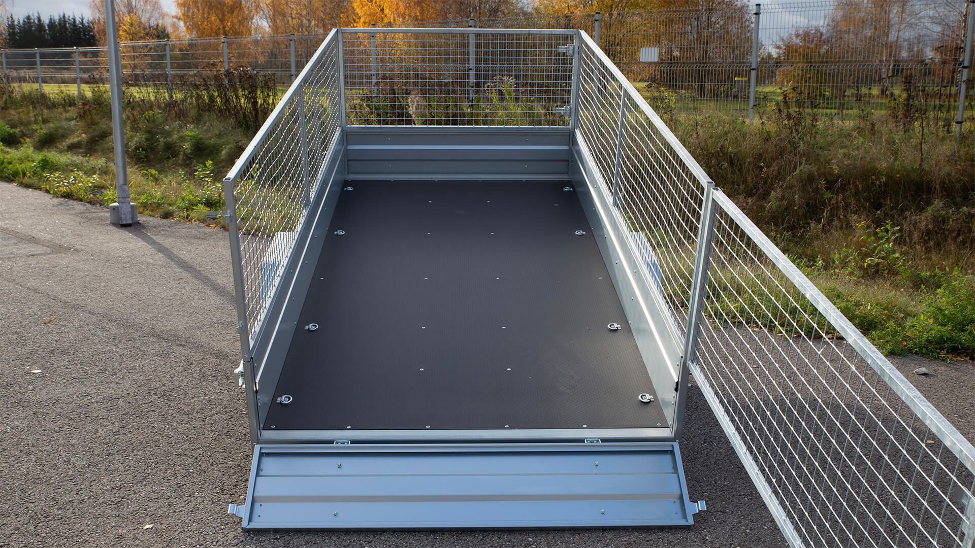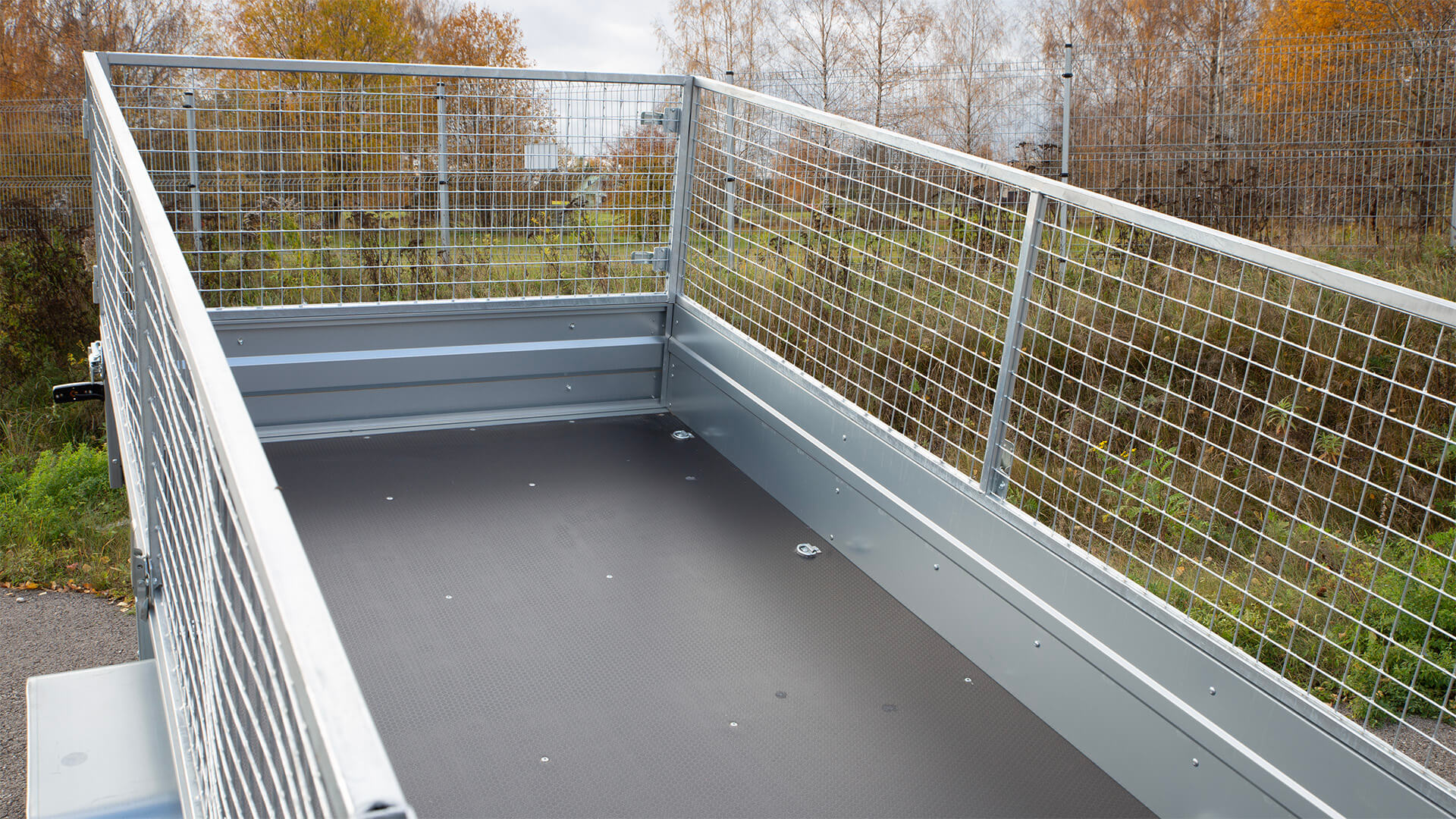 En tippbar vagn med hela 8 stycken invändiga lastöglor, ger många användningsmöjligheter. Vagnen är manuellt tippbar men förberedd för gasfjäder.