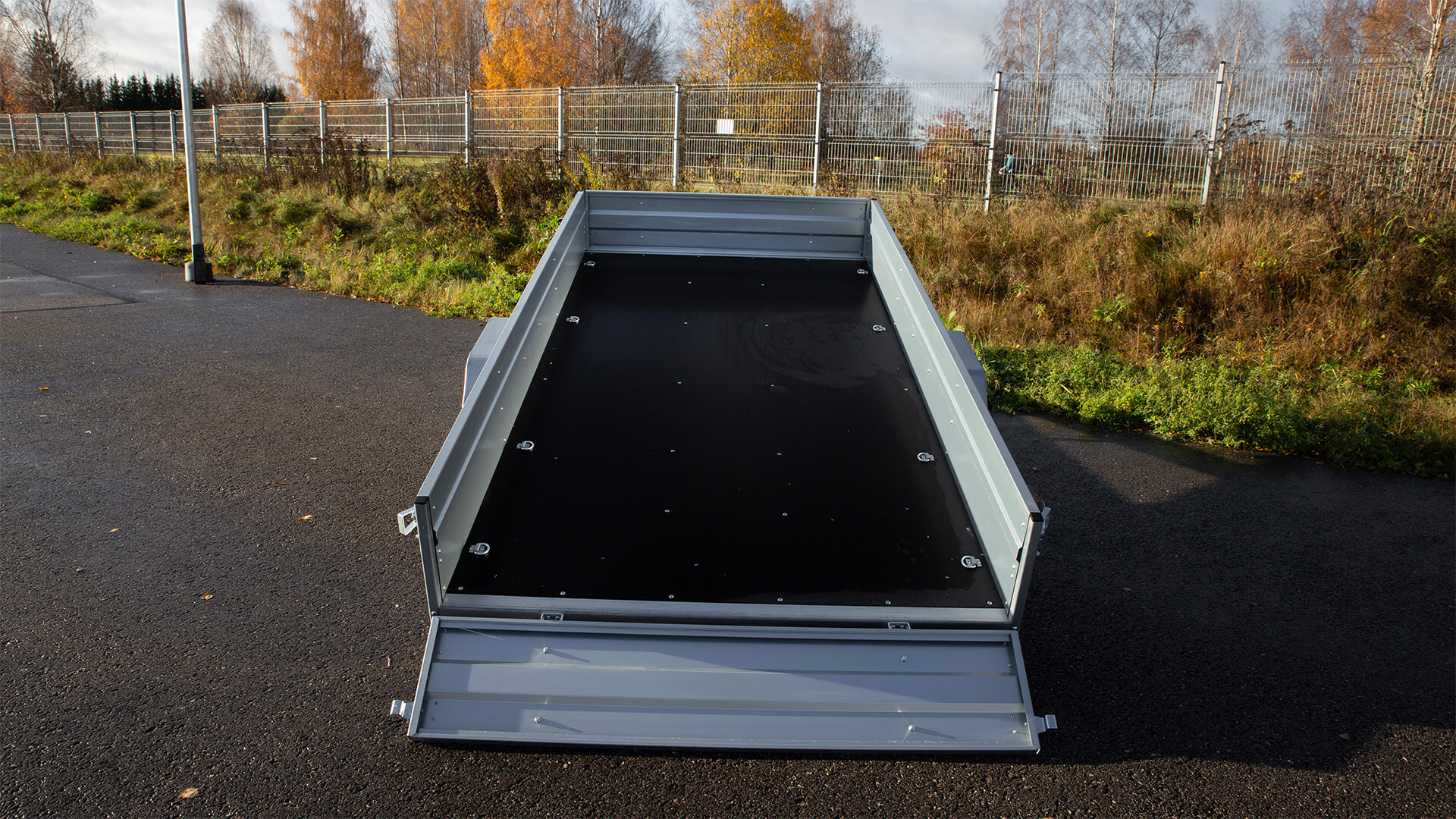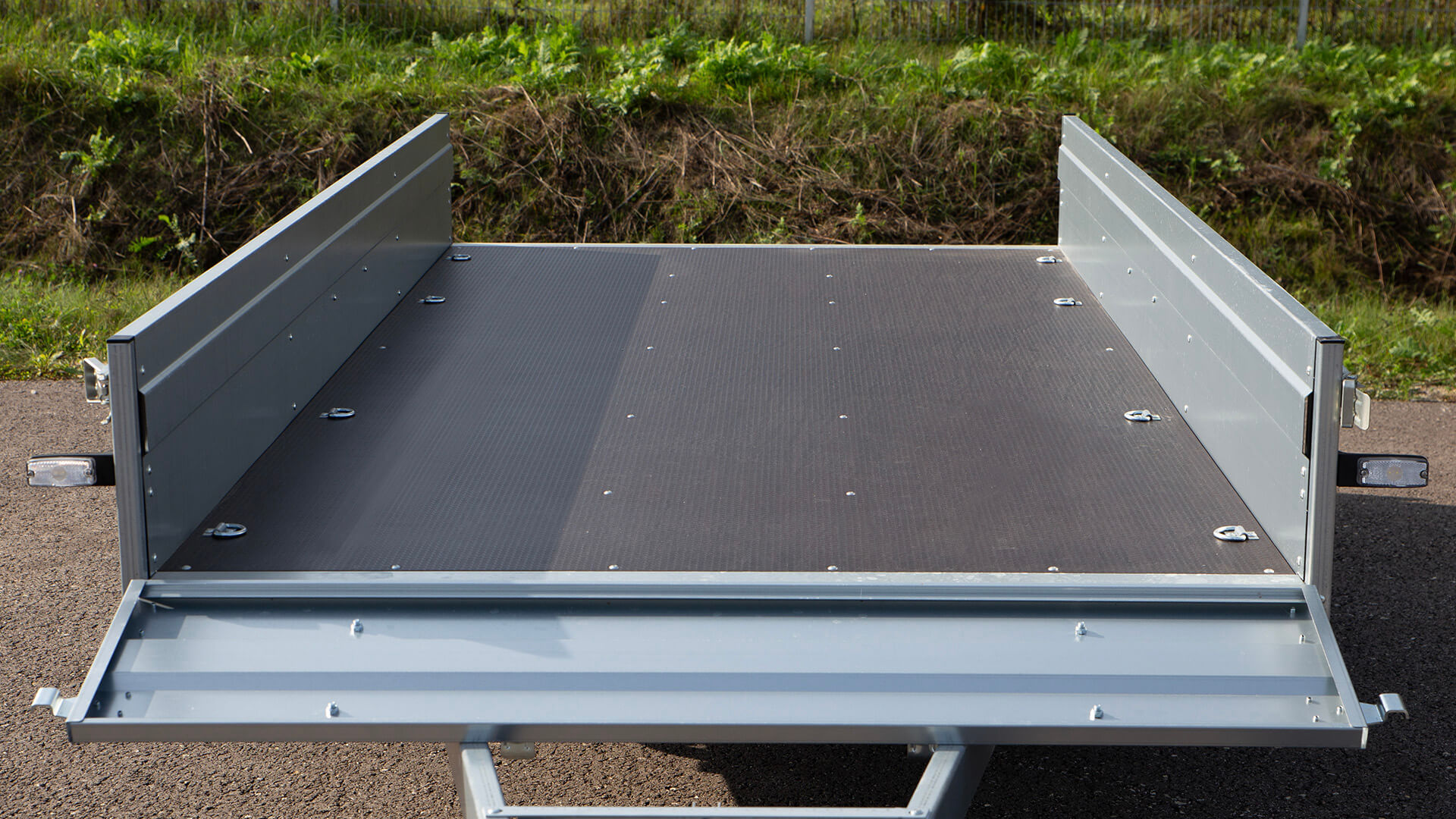 En tippbar vagn med hela 8 stycken invändiga lastöglor, ger många användningsmöjligheter. Vagnen är manuellt tippbar men förberedd för gasfjäder.